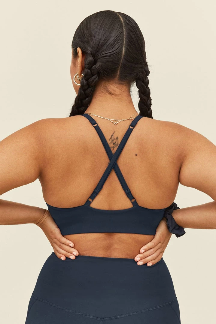 No longer do you need to choose between a sports bra and a crop top. Made from recycled water bottles, Topanga has a high-neck, a low back, and adjustable criss-cross straps that keep everything in place. Finally an x that won’t let you down.
