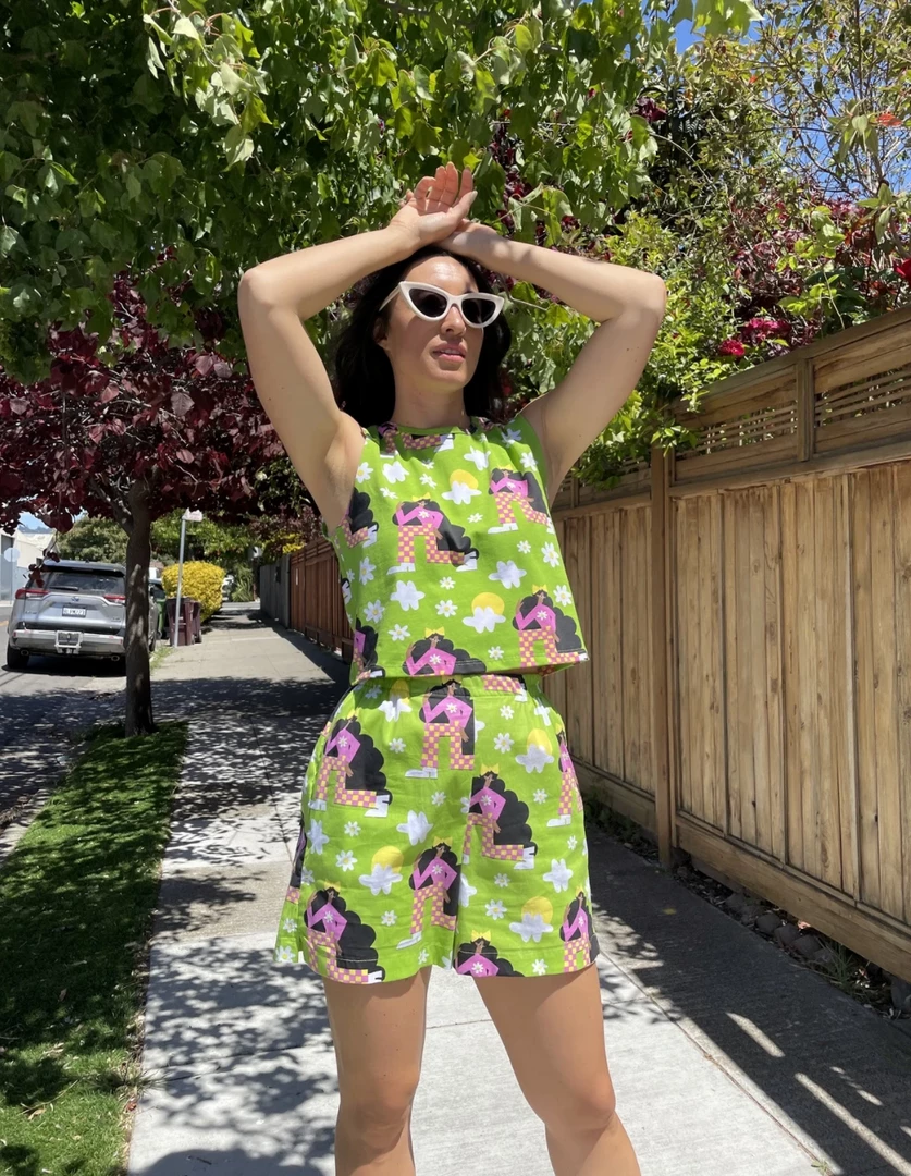 Made in stretch cotton jersey. Featuring artwork by Naomi Anderson-Subryan