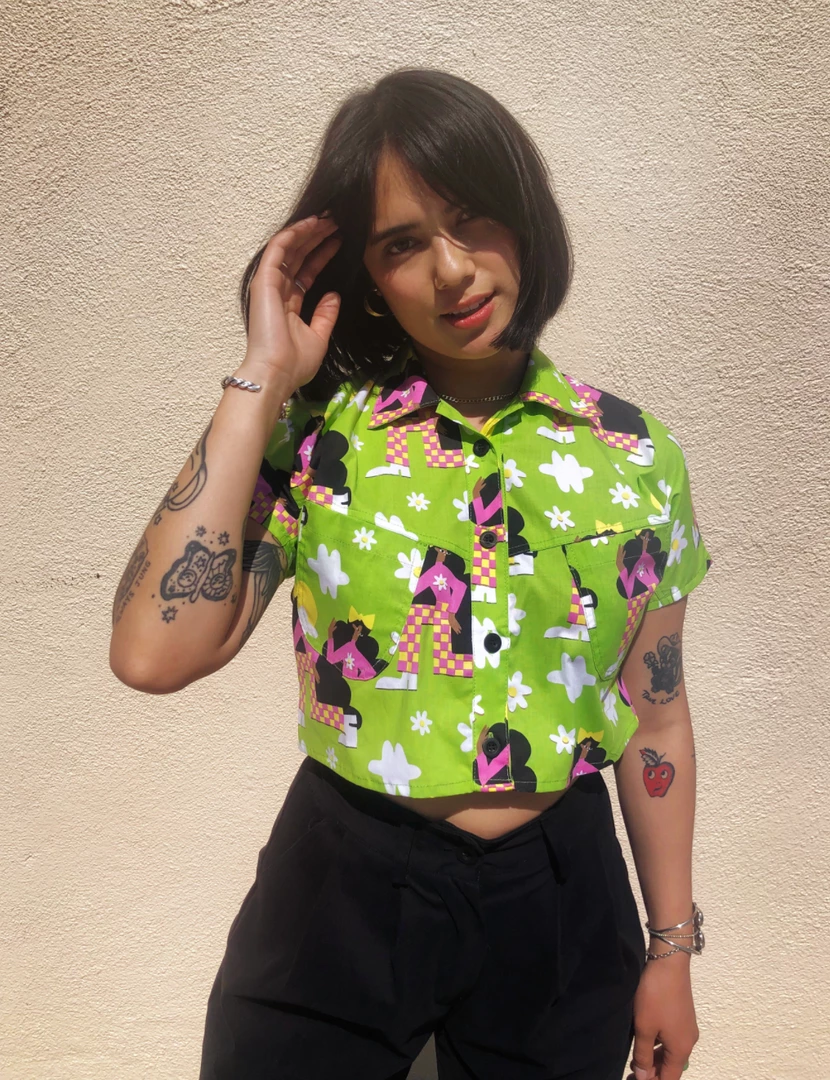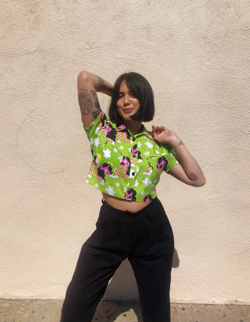 Care instructions: We want all our garments to last without harming the environment so only wash garments when they really do need it. Then turn them inside out and hand wash in cold water to preserve the print color and hang dry. We prewash our poplin to avoid shrinkage on your end but everyone’s water and soap varies so there could be a teensy bit more.
