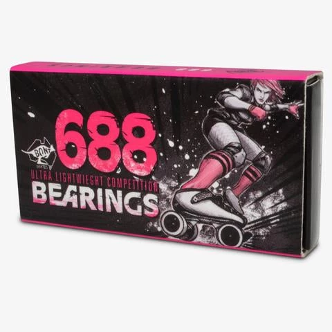 The Bont 688 mini bearing has an exceptionally fine polished bearing track surface and incredibly precise balls. The light weight plastic cages allow for lower rolling resistance. The steel, which is extremely strong, helps the bearing keep its shape when under load.
