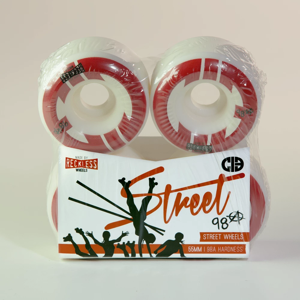 Street Wheels are made to ride all types of terrain without sacrificing speed or grip. Made for shredding. The wheels are smaller for faster acceleration, allowing you to pick up speed as you skate towards a rail, box or stair gap.