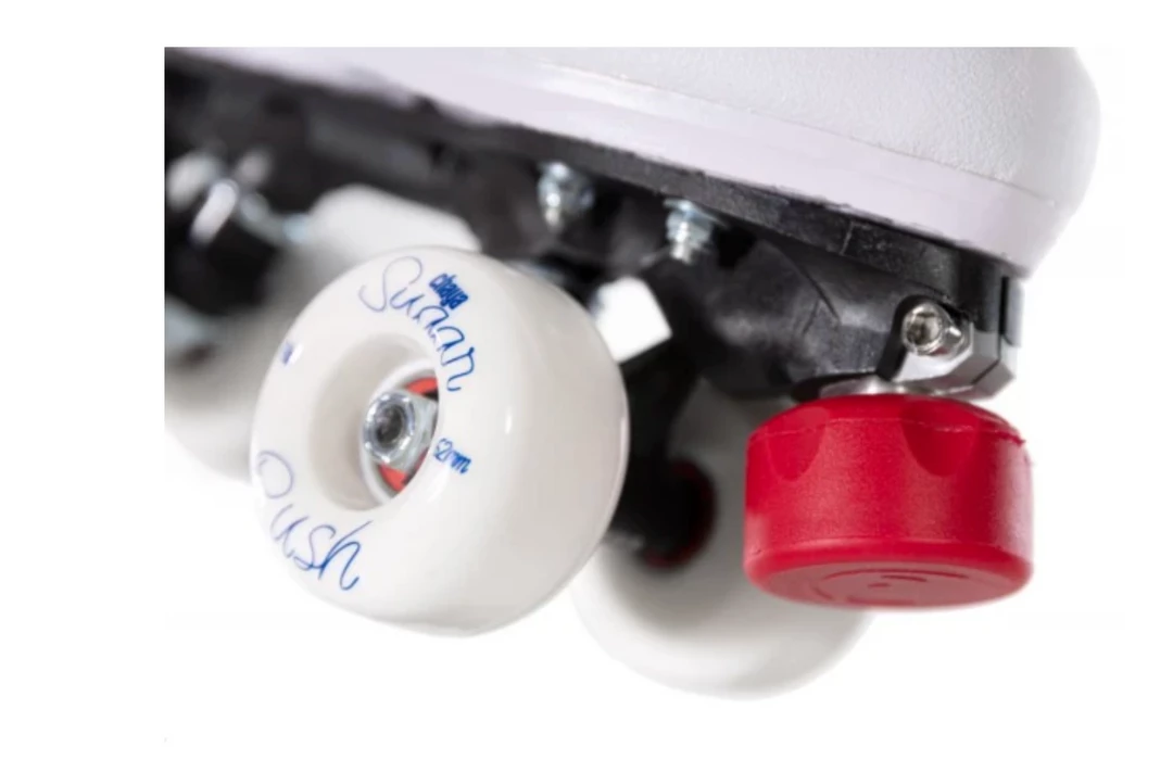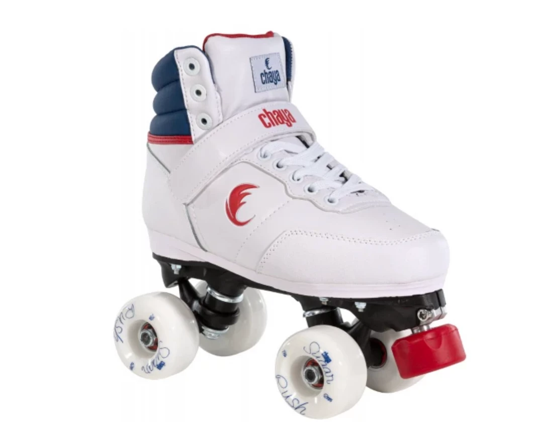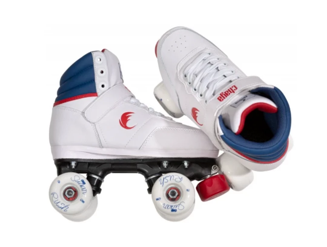 Chaya Jump 2.0 – The world is your playground The Chaya Jump 2.0 delivers old school style with premium materials and top quality features. Whether you’re cruising the streets, hitting the skate park or simply hanging with your squad – the Chaya Jump 2.0 will guarantee you have fun, and look great, while doing it. The retro style sneaker outsole of the boot coupled with superior interior padding is supportive yet extremely comfortable, ensuring you can skate all day and long into the night. Action leather used for the toe and heel area offer extra protection to your skates. Mounted to the Chaya Shari (fiberglass reinforced) plate, and rolling on Chaya ‘Sugar Rush’ wheels (59mm/78A), Wicked ABEC 7 bearings and the Chaya Controller toe stop makes for an extra smooth, extremely comfortable and very responsive ride. With the Chaya Jump 2.0 – the world is your playground!