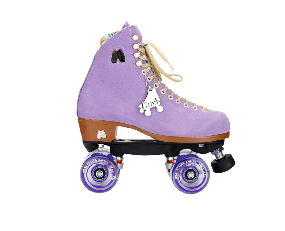 Lilac suede high top roller skates can be used for indoor or outdoor skating. Moxi Lolly Lilac Skates are a mid-range lifestyle skate, designed for recreation and street skating. The soft leather boot breaks in quickly with minimal discomfort and forms to your foot more than less expensive synthetic skate boots.