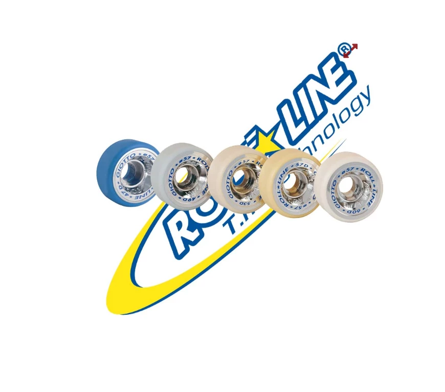 The Giotto 57mm Professional FreeStyle Wheels provides a less expensive (than the Urethane counterparts), yet, very high quality wheel, which is used on many types of skating surfaces including standard wood floors coated with plastic or poly urethane, but also unusual surfaces like, tile type basketball and volleyball courts, tennis courts (Indoor or outdoor), and concrete or terrazzo surfaces that are more common around the World. The Giotto FreeStyle Wheels are used a great deal internationally, where there are few indoor skating centers like there are here in the USA. The Giotto FreeStyle wheels are most often used on abusive surfaces where the life expectancy of the wheels on these tough surfaces are not very long, but very High Skating Quality both Grip and Roll are required. Many of the world level FreeStyle competitors use combinations of hardnesses of the Giotto to achieve the best Skating result. The Roll-Line Giotto Professional FreeStyle Wheels are Lo- Profile, reasonably durable wheel which is Strong, Light, and with extremely Close Tolerances for Roundness, Trueness, and for the Cage where the Bearings and Spacers are mounted. The Roll-Line Giotto FreeStyle Wheels are a MonoCompound Elastomeric ThermoPlastiche wheel, which is produced utilizing an injection system and is Silver Chromed.