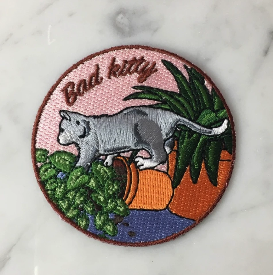 Bad kitty? This is the perfect patch for cat & plant ladies! Mischievous kitty has gotten into the plants…again! Meow!